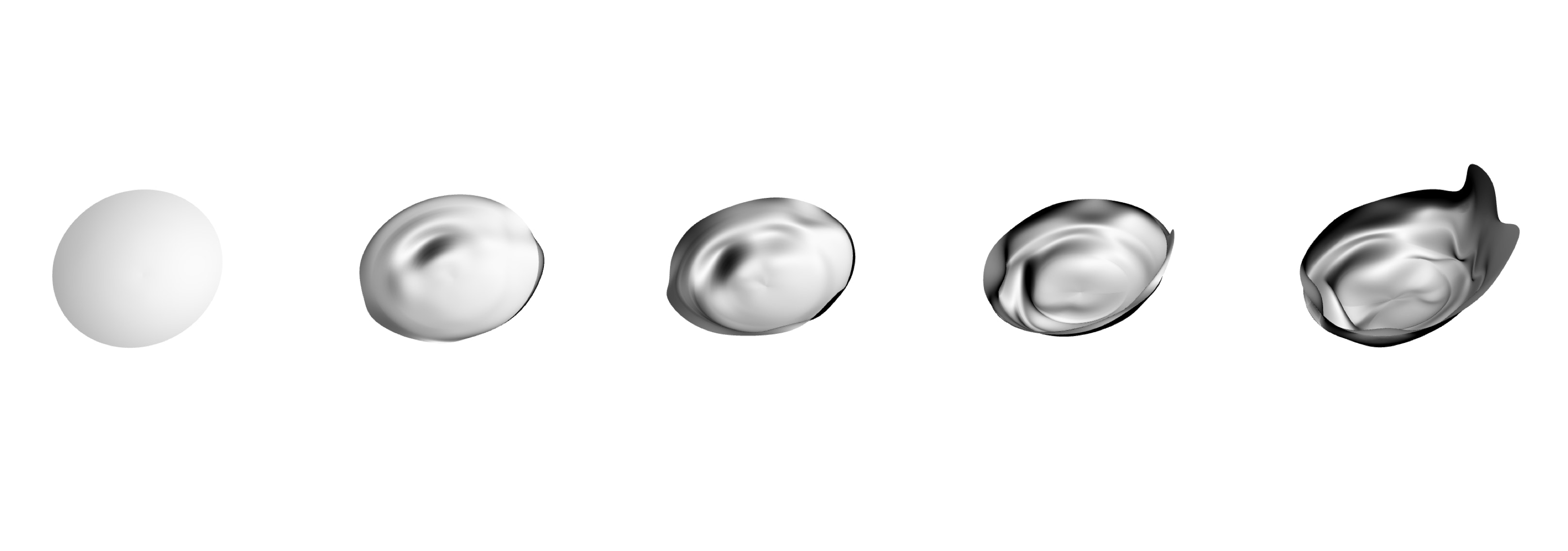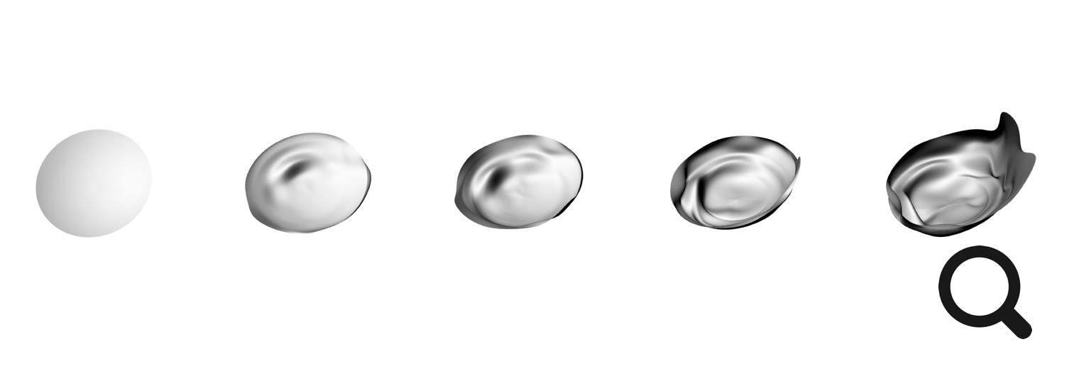 The goal of the experiment is to design a drinking device through guided evolution. The starting object undergoes random modifications through an algorithm, producing three mutated offsprings.